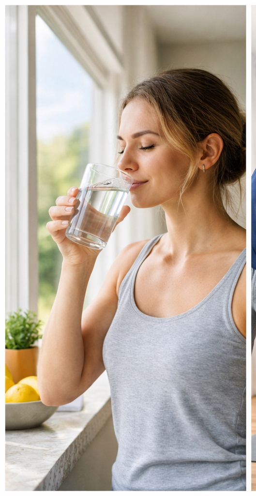 - Drink 1–2 glasses of warm water after waking up